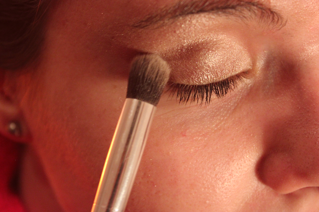 Primeiro de tudo eu começo por apanhar sempre o cabelo. Detesto maquilhar-me com os cabelos à frente da cara. Depois de ter a pele bem hidratada aplico sempre o primer para que a maquilhagem dure mais tempo e também ajuda a matificar a minha pele. Depois passo para a escolha das sombras e desta vez recorri à minha querida Naked porque tem sombras com bastante shimmer, ideal para uma ocasião mais especial.