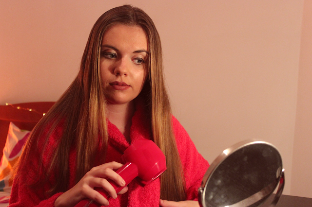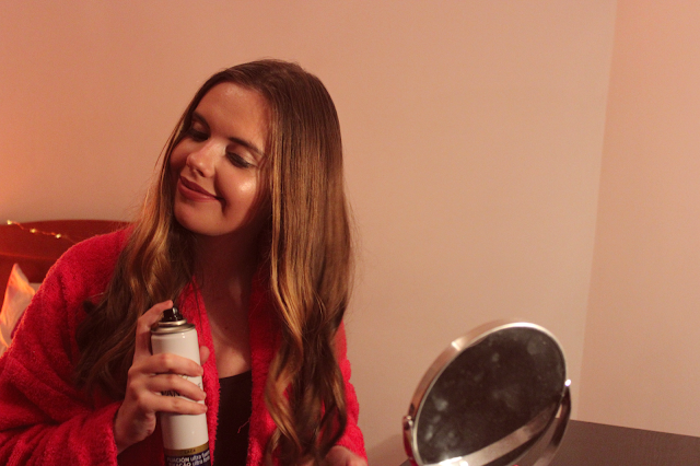 Para o cabelo eu decidi fazer uns caracóis nas pontas. Antes de qualquer coisa aplico um protector de cabelo por causa do calor. E isto é muito importante, não se esqueçam! Depois penteio-o muito bem e pego no meu Babyliss para fazer os caracóis. Quando terminarem apliquem sempre uma laca que irá ajudar a que os vossos caracóis dure mais tempo.